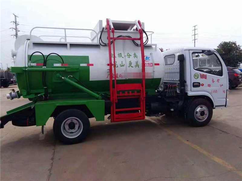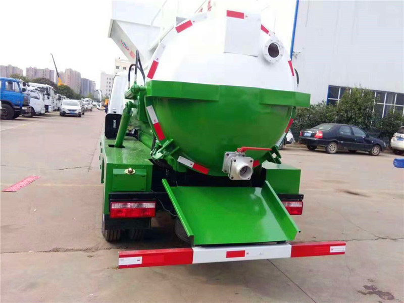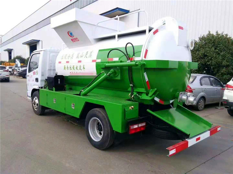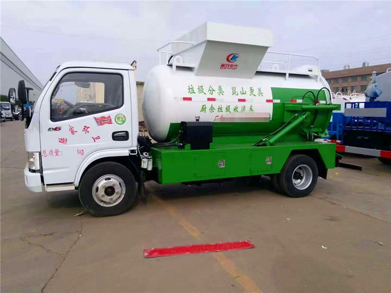 罐體容積4~5m3,罐體厚度4.5mm,配備120L/240L掛桶提升翻轉機構,液壓系統,后蓋液壓鎖緊開啟,罐體可以舉升自卸,尾部帶自流閥;用于運輸液態垃圾,其特點操作簡單,密封性好,無泄漏,無異味;可選裝固液分離功能,推板擠壓功能,常用于餐館的垃圾轉運處理