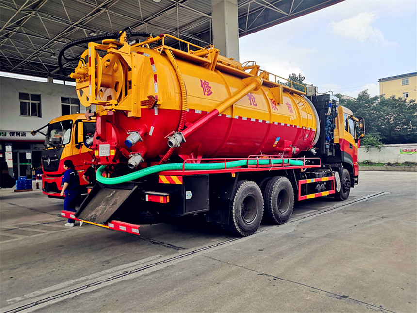 清洗部分:8方水箱,采用6mmQ235優質碳鋼板,水箱兩側消防接口進水,工具箱一個。采用德國品浮高壓泵270升流量,配100米內徑22#高壓管,10個大小不同噴頭一套, 后置式清洗卷盤,帶淋管裝置(用于淋洗高壓管疏通管道過后上面殘留的污物),帶氣吹水功能(用于吹出每次高壓管工作完以后內部殘留的水漬,防止天冷結冰影響下次使用)
