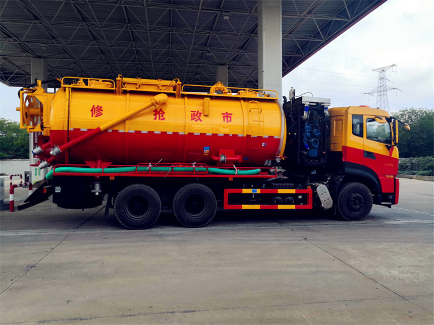 吸污部分:16方污罐,罐體8mmQ235優質碳鋼,配濰柴375(420)副發動機帶淄博SK-30水循環泵,10米吸污管一根,進氣管加過濾網,防溢閥加高,后蓋卡扣鎖緊,前視污亮管,后尾部加裝3個力拓牌100mm的球閥吸污口,600mm排污口液壓開啟,罐體帶舉升功能。
