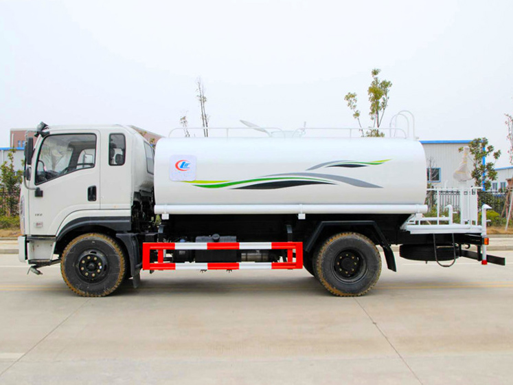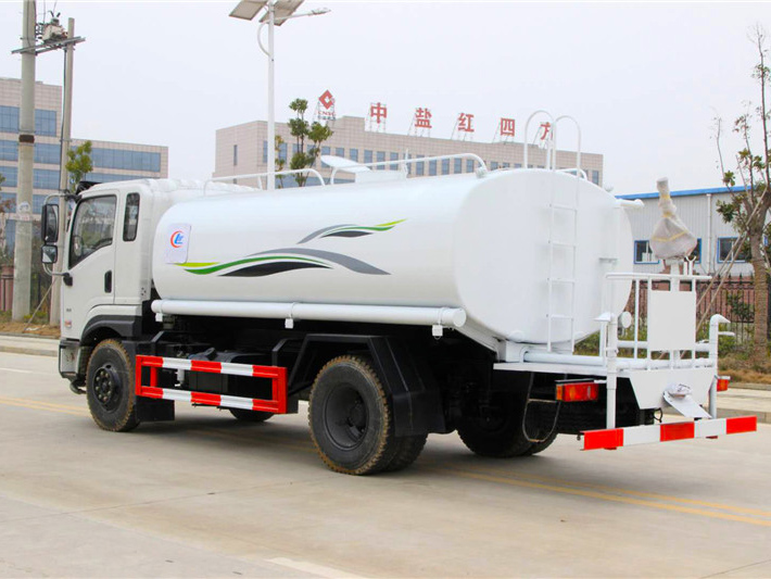 罐體容積為12立方灑水車,罐體鋼板為4mm碳鋼Q235材質,罐內隔板具有防波作用,以減輕汽車行駛時罐體液體沖擊,罐體及整車外形尺寸按照公告。帶大功率專用灑水泵,泵可自吸自排,整車前沖、后灑、側噴、帶65消防接口,后平臺帶綠化灑水炮灑水炮可全方位旋轉,可連續調成直沖狀、大雨、小雨、毛毛雨;前封頭帶水位計,后平臺主管路帶1寸澆花接口,后爬梯。平臺后部帶小安全告知牌:“隨時停車,注意安全”,帶兩根水管及陰陽端。罐體顏色:上白/下藍,銀灰/銀藍,罐體兩側噴“灑水車、綠化噴灑車”字樣,貼反光標示灑水車可加裝前沖后灑氣動閥駕駛室控制、可加裝霧炮機組發電機組噴霧降塵裝置、車頭可加裝推雪雪鏟、雪滾裝置街道、公路除雪等。