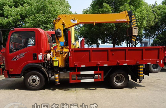 隨車起重運輸車,是一種通過液壓舉升及伸縮系統來實現貨物的升降、回轉、吊運的設備,通常裝配于載貨汽車上。一般由載貨汽車底盤、貨廂、取力器、吊機組成。載貨汽車底盤可選東風、解放、歐曼、斯太爾等各噸位。