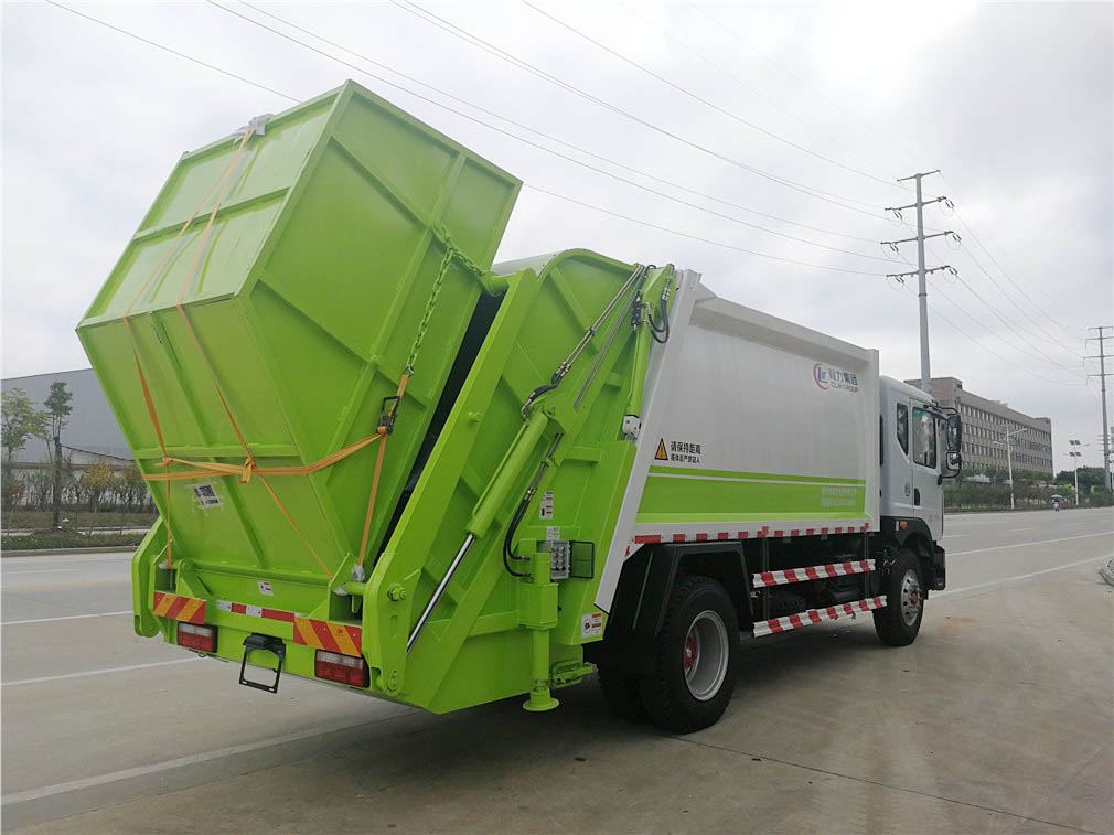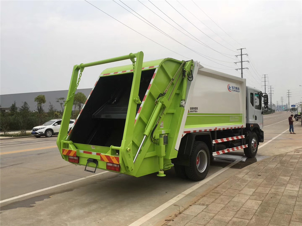 東風D9壓縮垃圾車上裝箱體是用優(yōu)質碳鋼板,邊板4mm厚,底板5mm厚,箱體后部帶弧型料斗,帶液壓翻轉機構,副壓縮,帶推板功能, 整車垃圾是從后面裝垃圾,向車駕駛室前面壓縮,然后由推板,把垃圾推車,整車帶PLC一鍵控制(含駕駛室操作)是目前垃圾車用途比較廣泛的 一款車型。